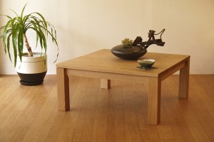 一見、普通の無垢材座卓のように見えるのですが、立派なこたつです。