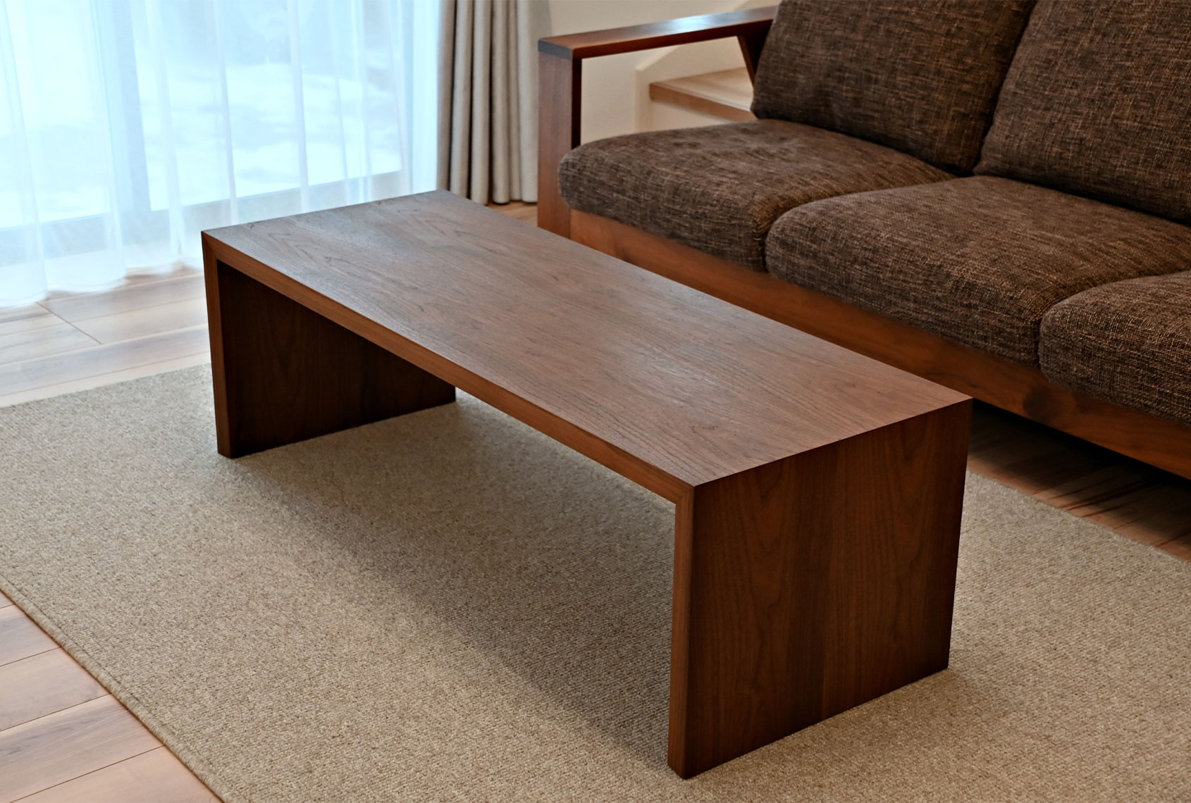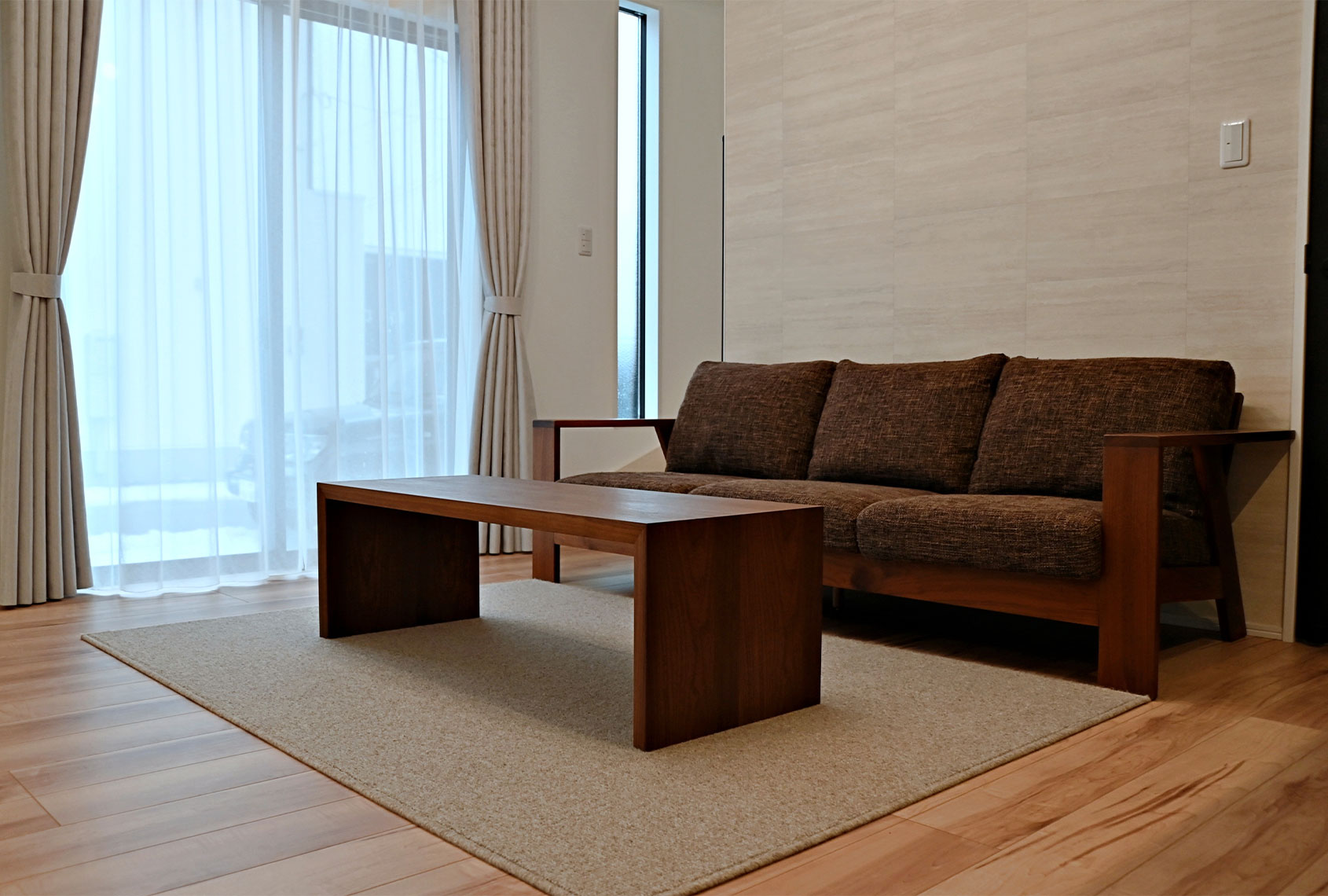 (奥様) 10年程前、糸魚川に引っ越しの際に、ソファを購入した事がきっかけです。糸魚川には、家具店が少ない為、富山の家具屋をでインターネット検索し、見つけたのがミヤモト家具でした。他にも多くの家具店を見に行きましたが、当時使っていた家具は劣化が激しく、良い家具を求めて辿り着きました。当時、担当してくれた男性スタッフの方が面白く、末永く使う事の出来るオイル仕上げの家具の良さを説明してくださったことをよく覚えています。食器棚も数年後に購入し、ミヤモト家具の製品には、品質に対する絶対の信頼がありました。良いものだという事は分かっていたので、新築の際も迷わず見てみたい!と思っていました。あとは主人の説得ですかね(笑)