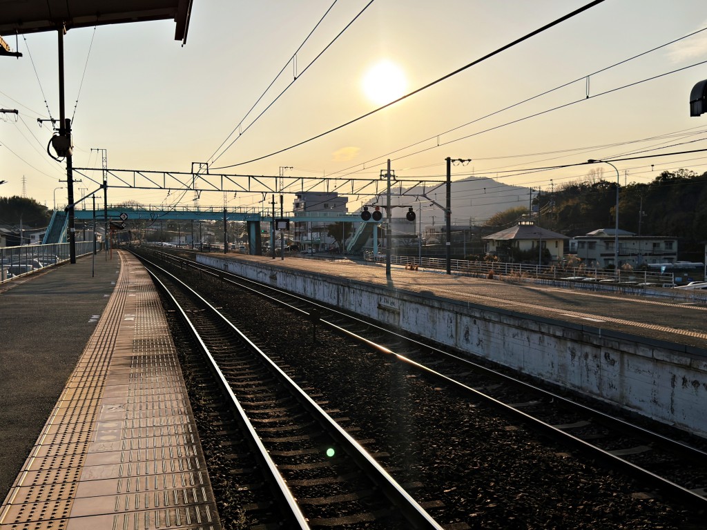 出張帰り…夕日を眺めながら、ベンチに座り